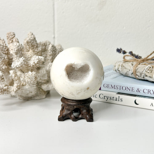 NATURAL DRUZY WHITE DENDRITIC AGATE SPHERE