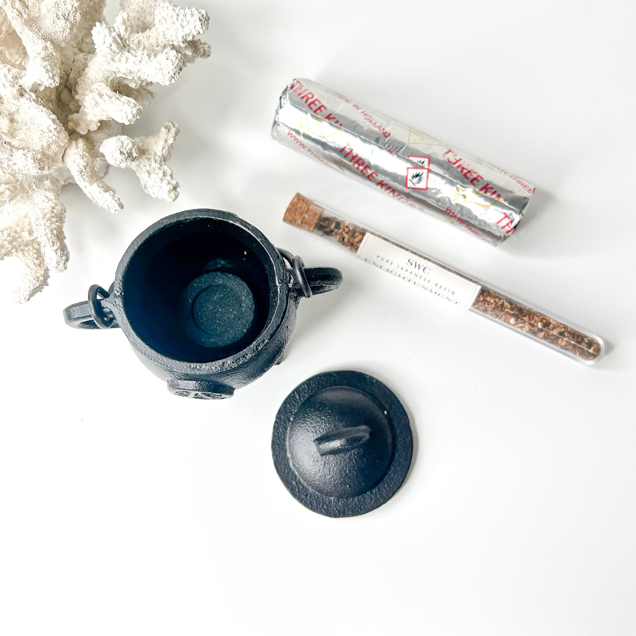 A must-have tool for any spiritual practice, this small cast iron cauldron is perfect for burning incense, herbs, resins, loose blends or intention papers. Featuring a raised pentacle symbol, it represents protection, balance and the harmony of the elements.