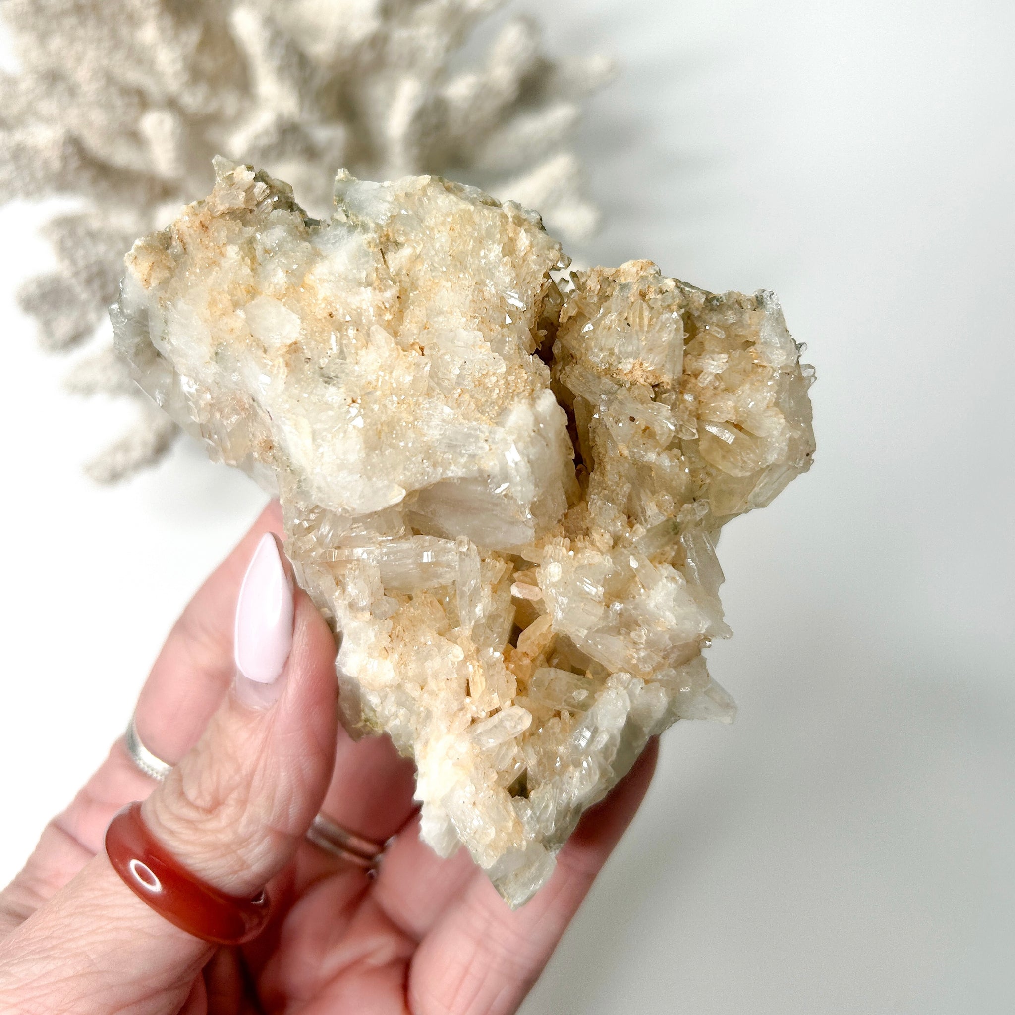 Display your cluster on an altar, desk, or bedside to uplift your surroundings and fill the air with clarity and calm. Every piece is one-of-a-kind, carrying the grounding yet luminous energy of the Moroccan earth.