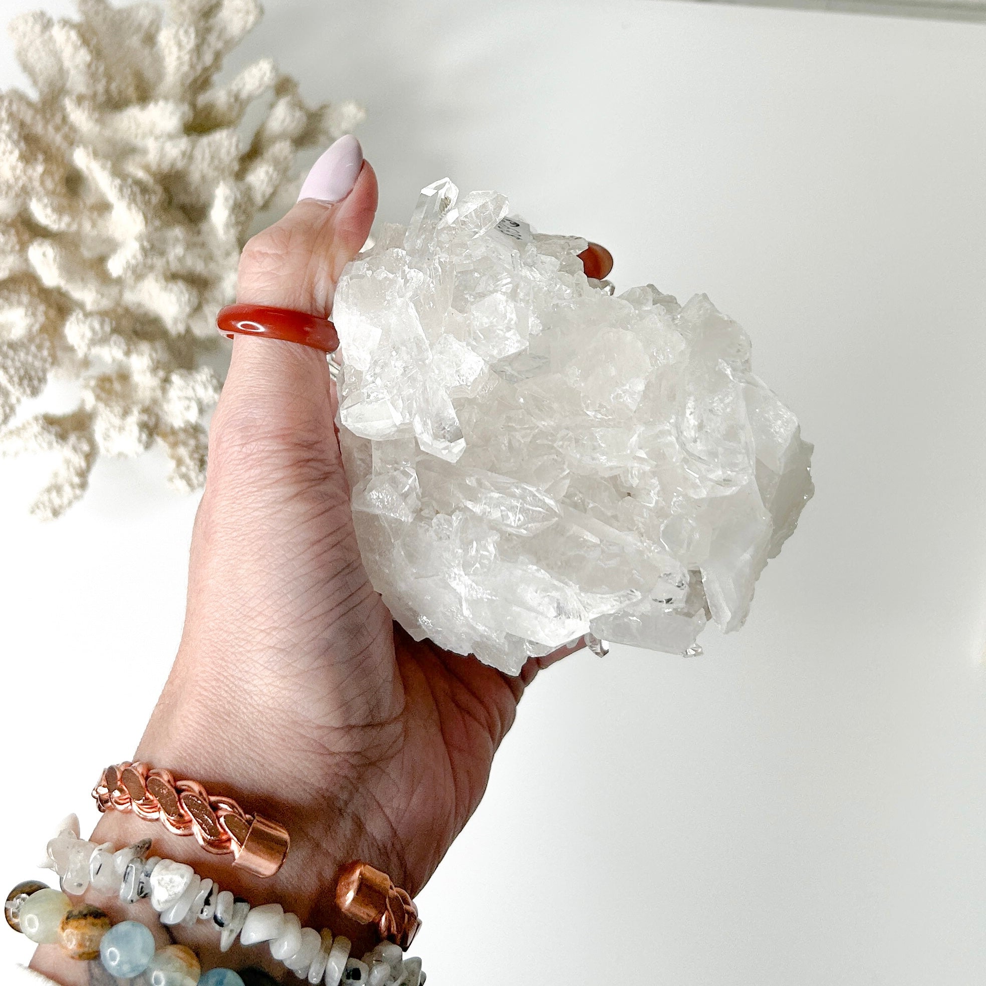 It cleanses and balances all the chakras, clears stagnant energy, and opens the mind to higher guidance. It absorbs, stores, releases and regulates energy. Clear Quartz draws off Negative energy of all kinds.