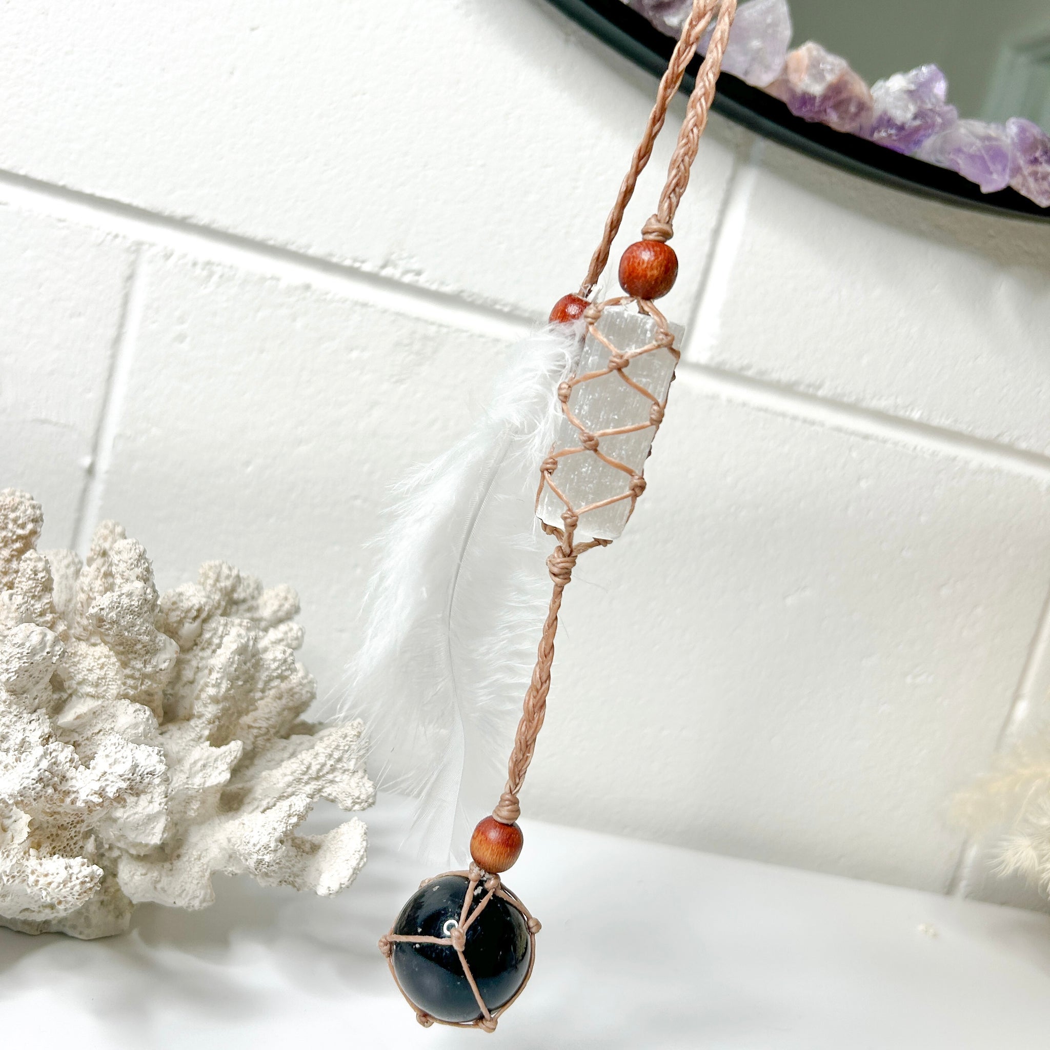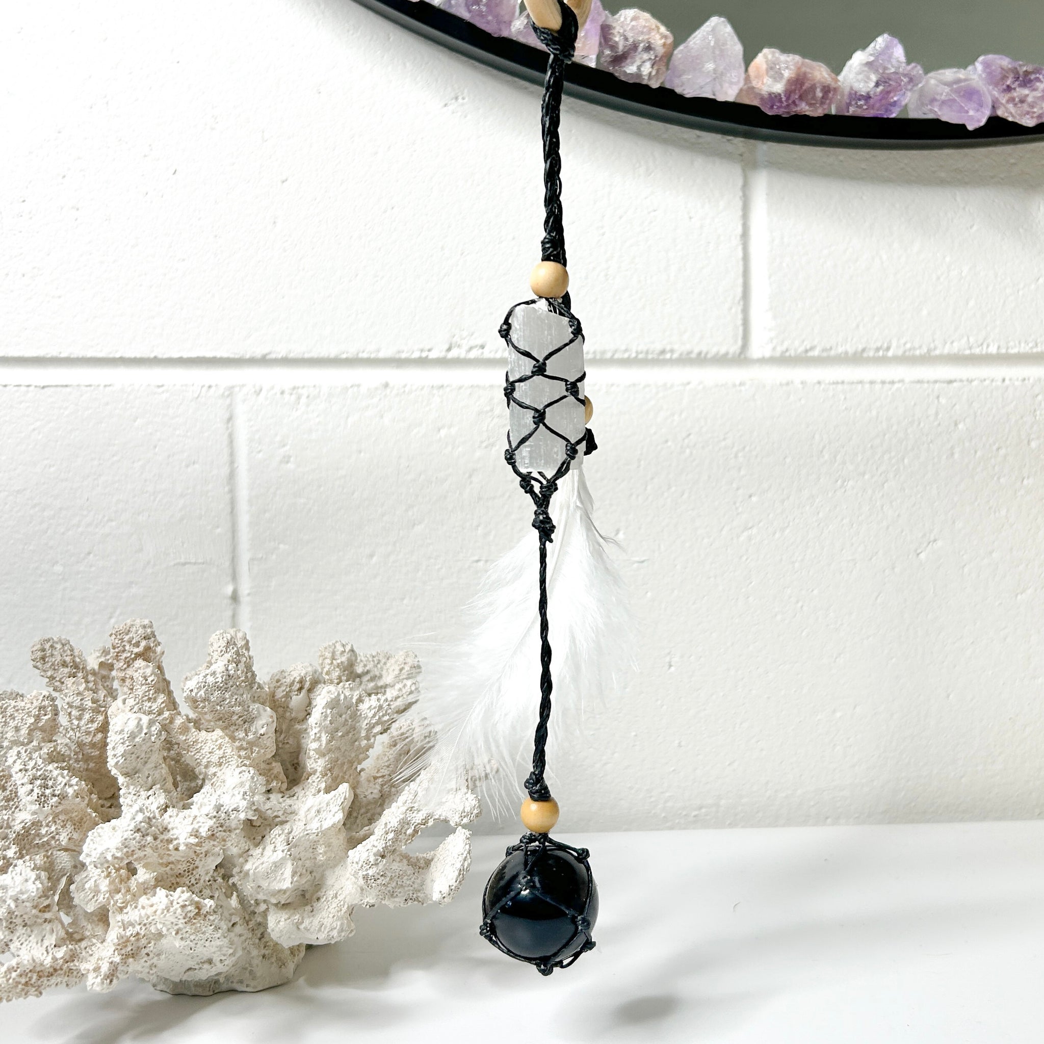 Protection Macramé Hanger - Selenite & Black Obsidian