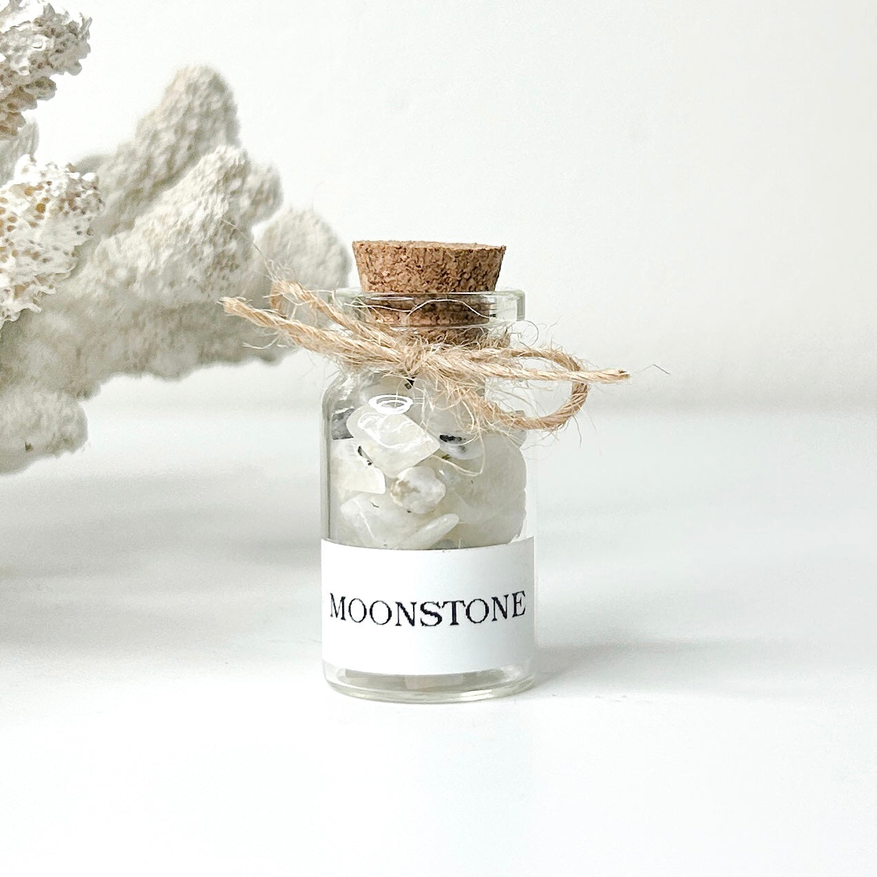 Bring your intentions to life with our Mini Wish Crystal Chip Jars. Each little glass jar is filled with natural crystal chips, sealed with a cork lid, and carries the energy of your wishes. Perfect as pocket charms, altar pieces, or meaningful little gifts, these jars radiate positivity and intention wherever they're placed.