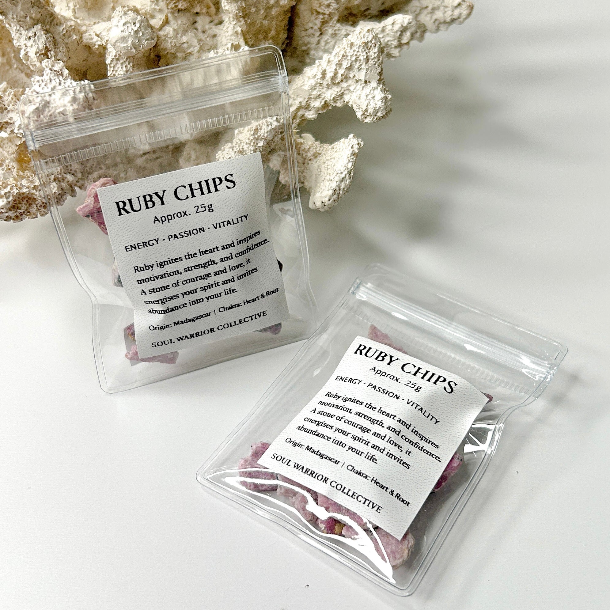 A stone of life force and courage, Ruby awakens the heart and ignites passion for living. It encourages motivation, strength, and confidence while promoting love and abundance.