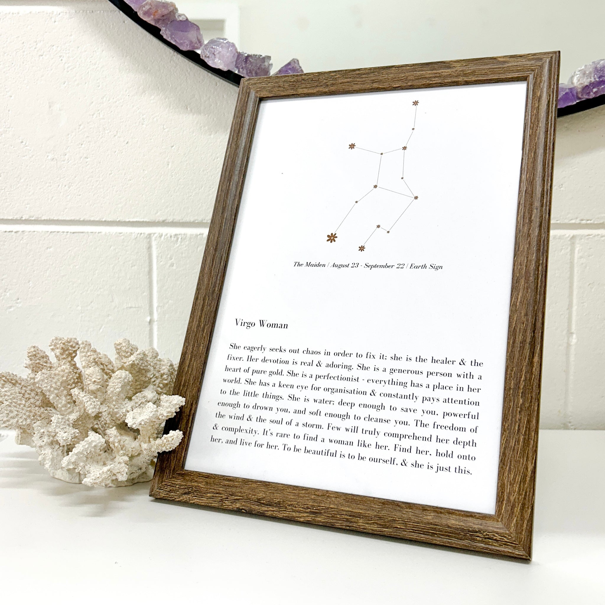 Celebrate your cosmic essence with our Zodiac Woman Framed Print — a soulful tribute to the magic of the stars and the woman you are.