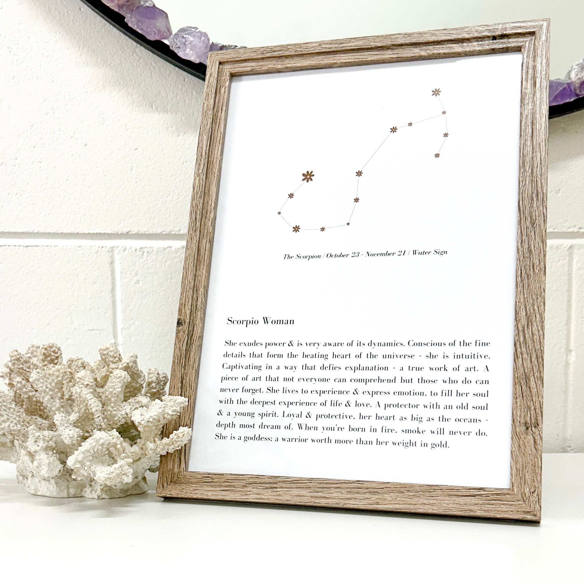 Each print beautifully captures the energy, symbolism, and spirit of your zodiac sign — a reminder of your innate strengths, intuition, and celestial nature. Perfect for your altar, bedside, or gallery wall, this piece adds a touch of soulful elegance to any space.